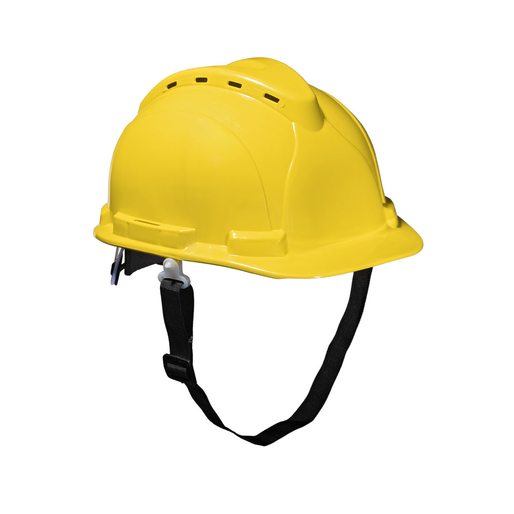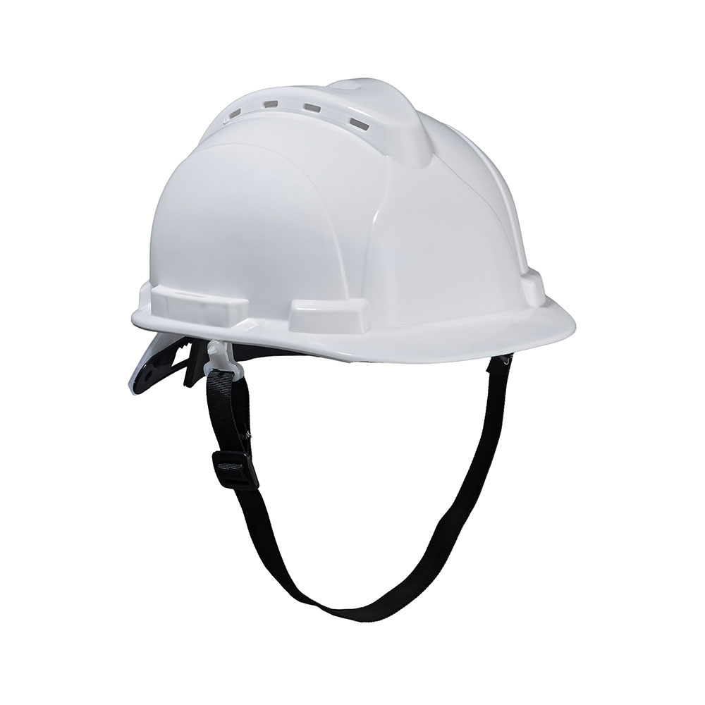Durable shell constructed from HDPE (High Density Polyethylene) / ABS (Acrylonitrile Butadiene Styrene) provides exceptional protection throughout the day in various environments like construction sites and workshops. Boasting excellent shock absorption properties, this helmet ensures unparalleled safety in any work place. Crown-cooling vents and the short brim design enhances upward visibility and day long comfort.